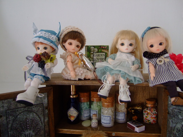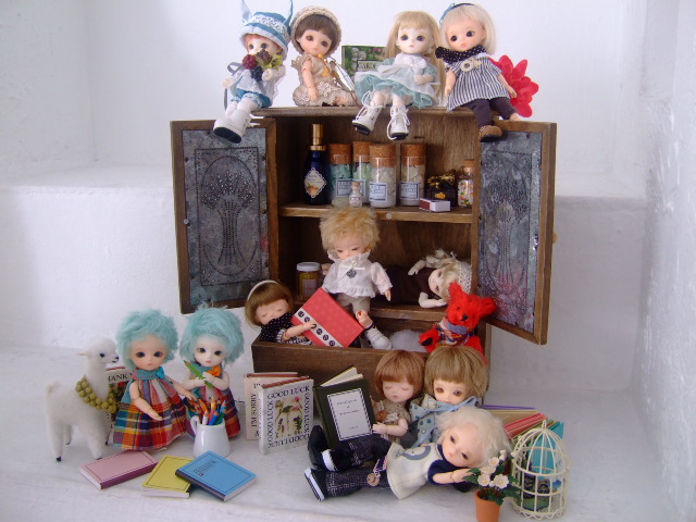 豆千代さんが持ってきてくださった素敵な棚に、PFっこわらわら大集合ですよ!!